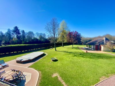 Pays d'Auge Sotheby's International Realty presents for sale this beautiful Norman property of recent construction, built on a beautiful 3381 sq.m enclosed park, flat and wooded in the heart of a charming village, quiet and not overlooked. At 8 minutes away from Pont l'évêque, 5 minutes away from Le Breuil en Auge and 20 minutes away from Deauville and Honfleur. Access to the A13 motorway at 6 minutes. In a green setting, you will enjoy a main house, a guest house, a triple garage with three parental suites on the first floor, and a semi-underground heated pool. The main half-timbered house offers on the ground floor, an entrance hall with cupboard, a guest toilet, a storeroom-boiler room, an office, a fitted and equipped kitchen opening onto a 35 sq.m bright double living room, facing south with bay windows overlooking the garden, open fireplace, high ceilings. On the first floor, independent toilets, a 20 sq.m master suite with shower room and bath, an office on the mezzanine that could be a second bedroom. Nearby, a very authentic old sheepfold, totally renovated as an about 60 sq.m guest house offers on the ground floor an entrance with cupboard, a 45 sq.m living room with a fitted kitchen opening onto the lounge with pellet stove, and a dining area, a bathroom with toilet. On the first floor, a landing, a bedroom. In the outbuilding, a triple half-timbered garage, a cellar, and three bedrooms with private shower room and toilet. Ideal as a second or main residence, and for a gîte or bed and breakfast project in a bucolic environment, only two hours from Paris and at 20 minutes away from the sea.